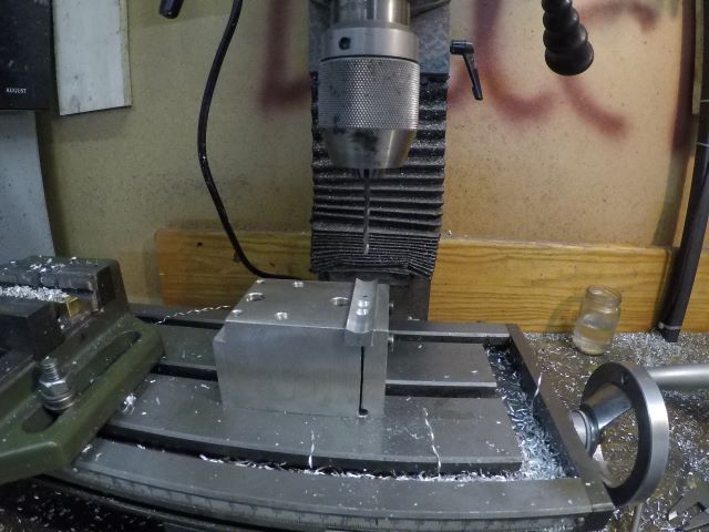 Afterwards, the blank goes back to the slot in the fixture block to drill the mounting holes for bolting it to the reel frame.