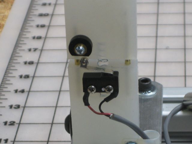 9. The two guide shafts together weigh 3.5 lbm and are nearly centered over the cutting point. Including the saw frame, the total down force at the cut is about 5 lbf. The machine runs without stall at this cut pressure. But if I add the auxiliary 1.8 lbm weight at the front end (increasing the down force at the cut to about 8.5 lbf), stall is a problem. I am using a 14 tooth/inch blade, but did not see much difference with 24/inch. NEMA 34 step motors of twice this rating are available and should allow use of the extra weight. I assume that this would increase the cut rate.