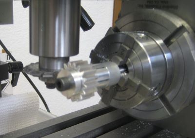 Mod 2: I still needed additional torque from the motor. Since the motor could supply plenty of power (speed times torque), a gearbox was needed. I bought two involute cutters of China source and made a mandrel to hold them.