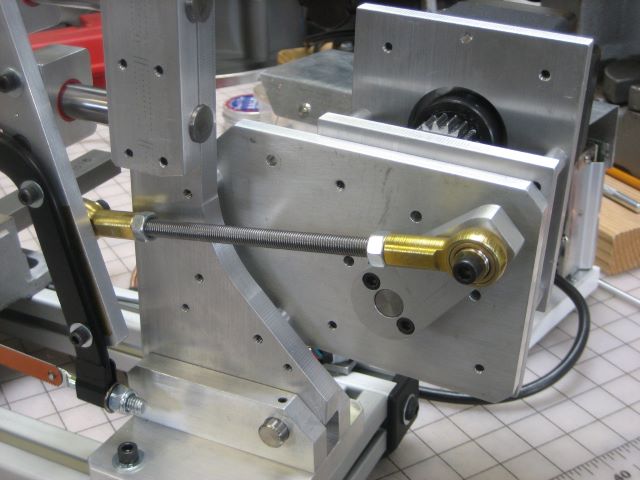 The poor design choice here was to make the reciprocating frame from the Stanley saw and two hangar brackets (aluminum 3/8 x 1). It takes a lot of attention to keep everything aligned so that the 4 linear bearings do not bind. A better design would be to make this one piece, which would require a 3/8 aluminum plate about 8 x 15 inches. I may pursue this change if I figure out how to profile the aluminum plate.