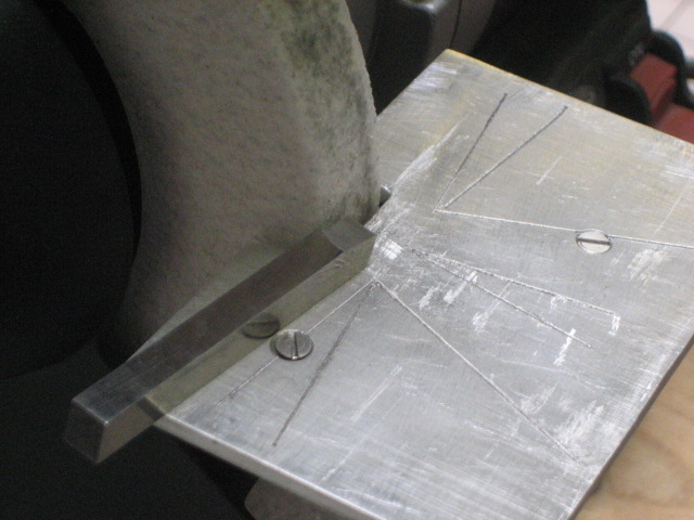 Update 20 Aug 2020: I just found this article, Hoffman Article. It says that I am wrong on tool height above the grinding rest, that instead of aiming for 7 degrees at the top of the bit you should have 7 degrees at the mid point. This is because a properly stoned tool will have a little material removed at the top and bottom of each face, and the true relief angle will be midway between the top and bottom angles that the grinder produces. He has some good photos that show this. So maybe my tool rest cover plate should be 1/8 inch thicker.