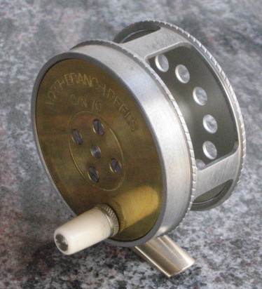 An iconic reel design is the Hardy Perfect. I have never had one in hand to photograph but I did borrow a Hardy Bougle from a friend, and it is the same thing except that the frame is raised pillar instead of round.