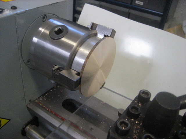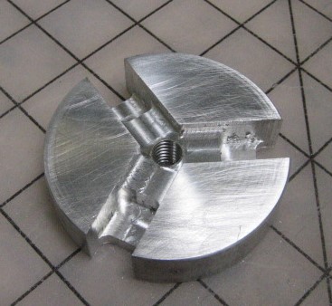The last consideration was making a thin (.110 inch) disk as the blank for the front end ring. To do this with the Sherline lathe I bought soft jaws for the 3 jaw chuck. The jaws step was .080 inch and that was enough to firmly hold the disk.