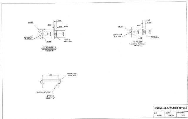 My observation on his pawls is that they are spaced 92.5 degrees apart. Because he has a 31 tooth ratchet, the pawls are exactly 8 teeth apart and so click over simultaneously. I would like to play around with 2 pawl placement and see what different sounds could be had. Maybe something like the Harley V Twin where the cylinders are 45 degrees apart.