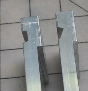 At first thought, it seems that the right cutter and left cutter top surface guides should be mirror images. But my grinder motor interfered with any approach to the wheel from its right side so both of these work from the left side of the wheel.