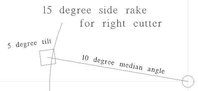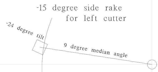 The protractor makes end and side relief angles of about 9 degrees and adjustable side and end cutting angles. The other two holders make 15 degree back rakes and 15 degree side rakes, one holder for right cutting bits and the other for left cutting.