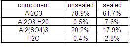 Aluminum oxide hydroxide is more voluminumous than aluminum oxide, so the hydrated material swells, closing the pores. Not all the oxide film is hydrated; Wernick gives the following composition for the film before and after hydration.