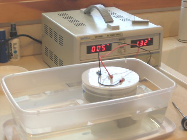 Recently I found that McMaster-Carr has a 1200 ml polypropylene jar that is the same diameter as the 1000 ml (33.8 oz) jars that I have been using. This extra height makes the electrolyte level in the jar less critical.